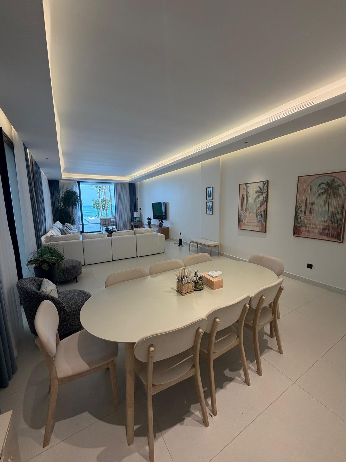 • الدور الأرضي : صاله و طاولة طعام بإطلالة على المسبح و البحر مباشرة
