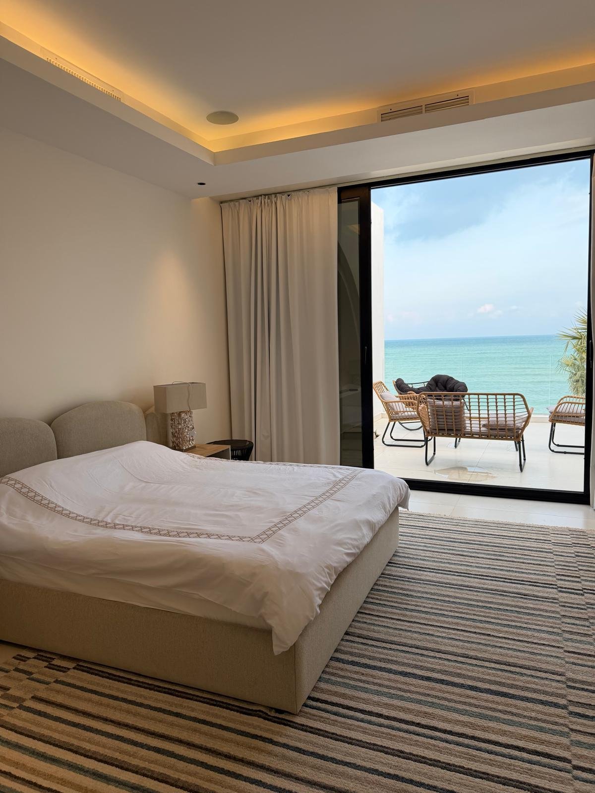 • الدور الأول : 4 غرف نوم ماستر الرئيسية مطلة على البحر و المسبح مع بلكونة كبيرة وجلسة خارجية.