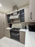 مطبخ رئيسي مجهز و غرفة للعاملات مع دورة المياه.