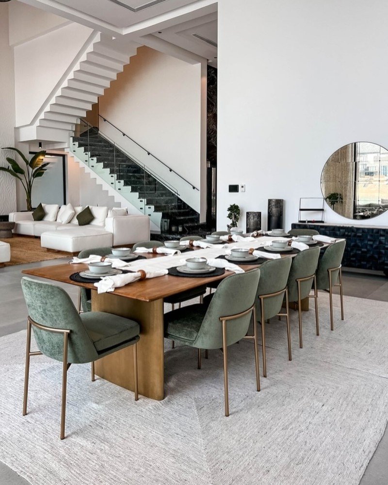 • طاولة طعام رئيسية ١٠ كراسي مطلة على المسبح و البحر